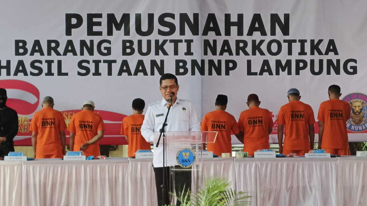 Pemerintah Provinsi Lampung menyatakan komitmennya untuk terus mendukung upaya BNN, baik melalui program pencegahan, rehabilitasi, pemberdayaan masyarakat, maupun penindakan hukum, guna mewujudkan Lampung yang Bersih dari Narkoba.(BSP) .