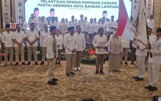 BENSORINFO.COM - Ketua DPD Gerindra Lampung Rahmat Mirzani Djausal mengukuhkan pengurus Dewan Pimpinan Cabang Gerindra Kota Bandarlampung di Swissbell Hotel...