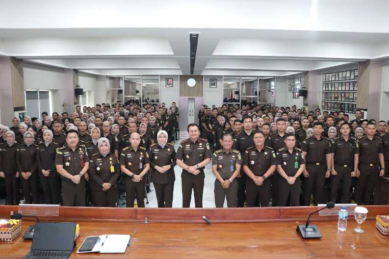 Lampung – Dalam rangka membentuk kompetensi CPNS agar menjadi PNS profesional yang berkarakter juga menanamkan nilai-nilai dasar ASN (Aparatur Sipil Negara) dengan Core Values ASN berorientasi pelayanan, akuntabilitas, kompetensi, harmonis, loyal, adaptif, dan inovatif serta mempersiapkan CPNS menjadi sosok yang mampu melaksanakan tugas dan jabatan secara profesional dan bermoral, Kejati Lampung melalui Subbagian Kepegawaian Bidang Asisten Pembinaan menyelenggarakan Pelatihan Dasar (Latsar) kepada 260 Peserta CPNS Tahun 2024 yang ditugaskan dalam wilayah hukum Kejaksaan Tinggi Lampung pada tanggal 18 Juni 2025.