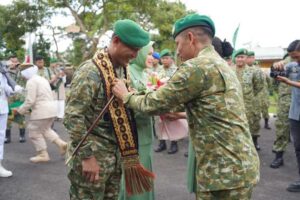 Dalam apel tersebut, Brigjen TNI Haryantana, S.H., secara resmi menyerahkan pasukan kepada Kolonel Inf Sumarlin Marzuki, S.E., M.Han., yang kini mengemban amanah sebagai Komandan Korem 043/Gatam yang baru.
