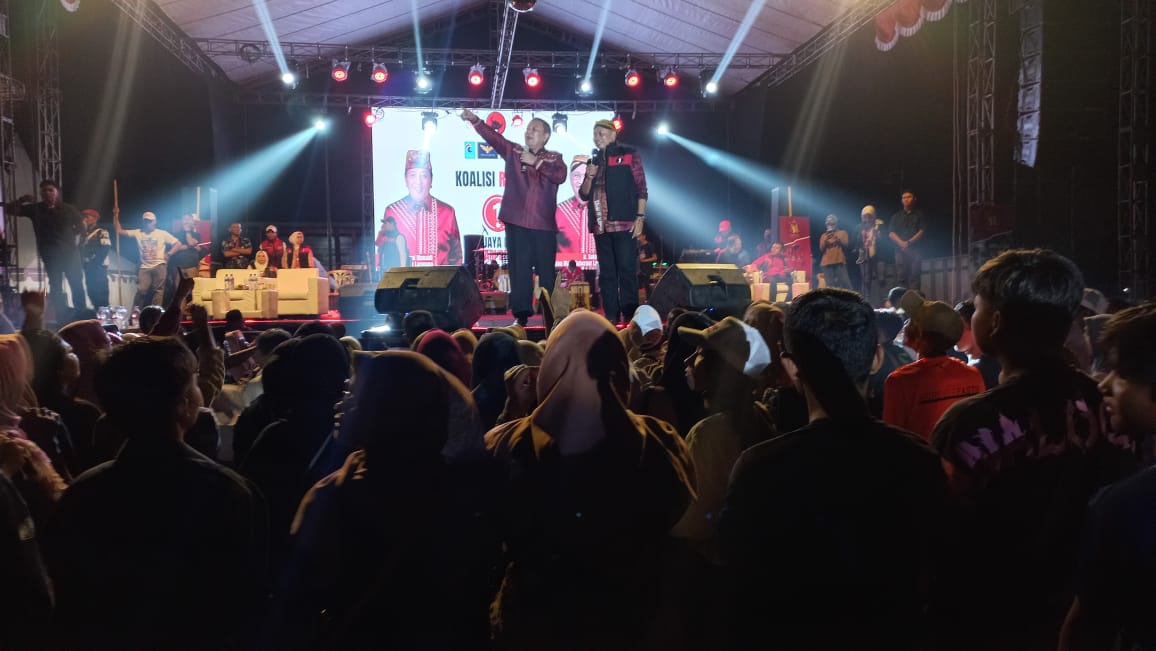 Lampung Selatan – Pasangan Calon Gubernur Lampung Nomor 1, Arinal Djunaidi-Sutono (Ardjuno), menggelar konser dan pesta rakyat di Lapangan Sidorejo Kecamatan Sidomulyo Lampung Selatan, Senin (18/11/2024).