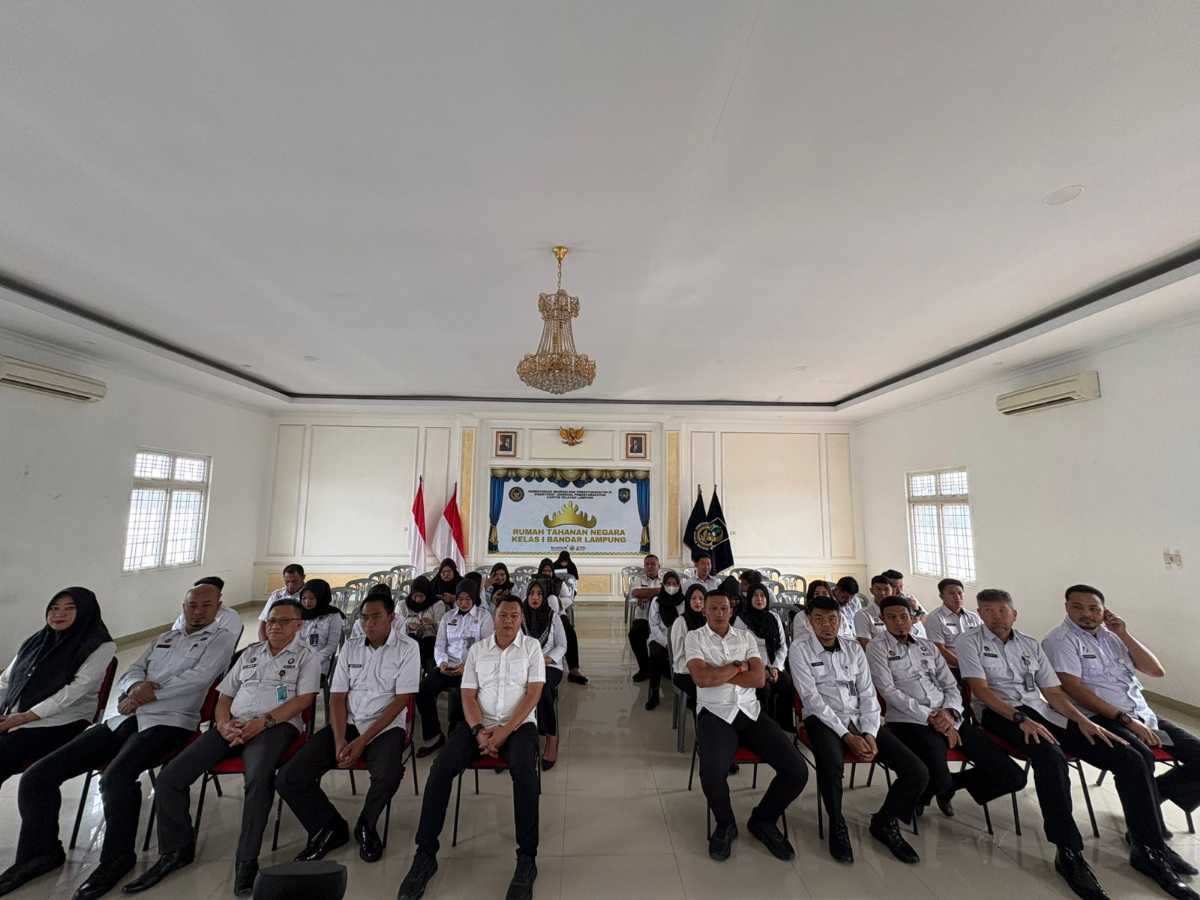 Upacara yang dilaksanakan di Aula Rutan tersebut diikuti oleh pejabat struktural dan seluruh pegawai, yang tersambung secara serentak dengan satuan kerja di seluruh Indonesia. Nuansa khidmat terasa sejak awal kegiatan, sementara Kepala Rutan Kelas I Bandar Lampung, Tri Wahyu Santosa, mengikuti jalannya upacara dari Kantor Wilayah Kementerian Imigrasi dan Pemasyarakatan Lampung.